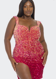 MBC Boutique | Red Ombre Glitter Dress w/ High Split - Deanna